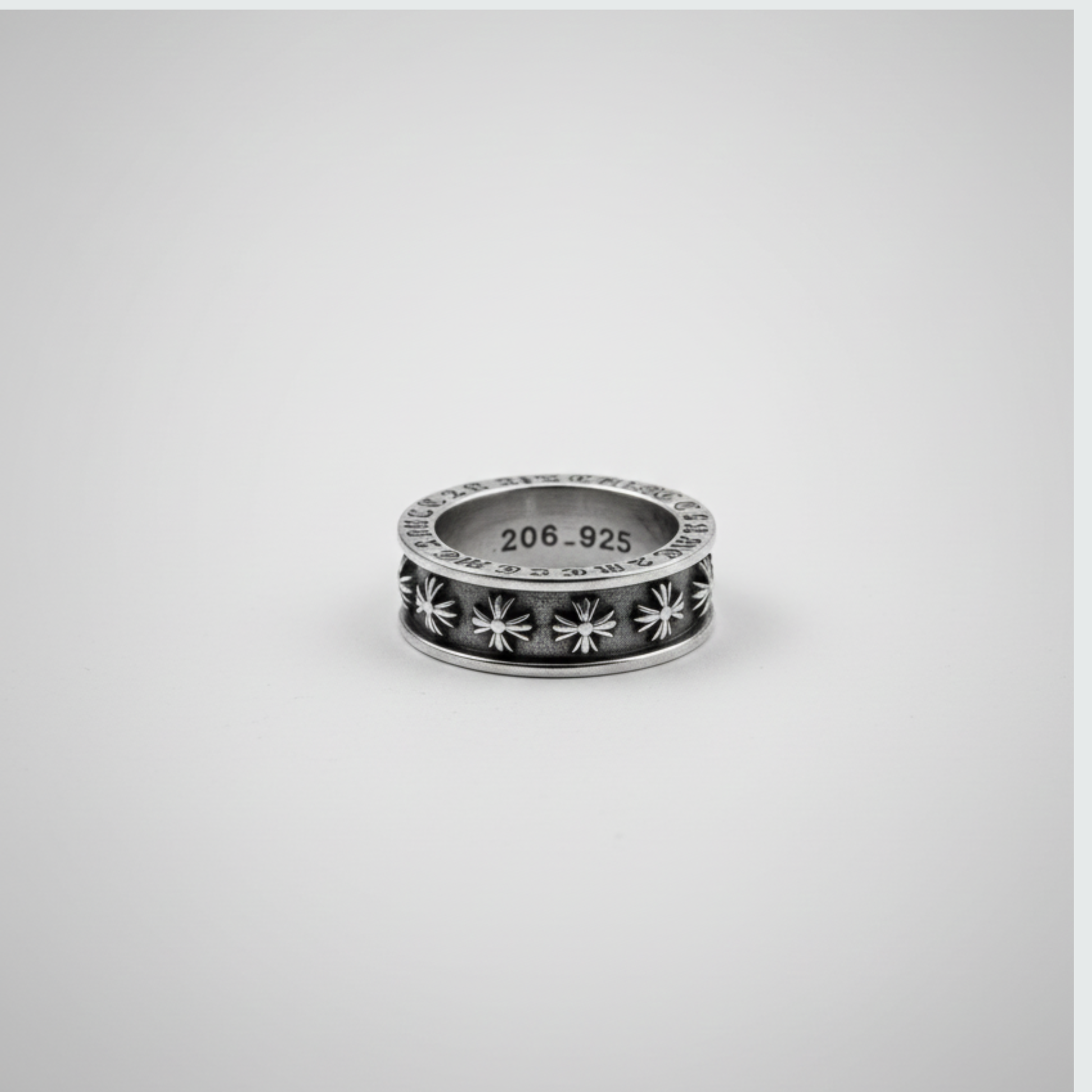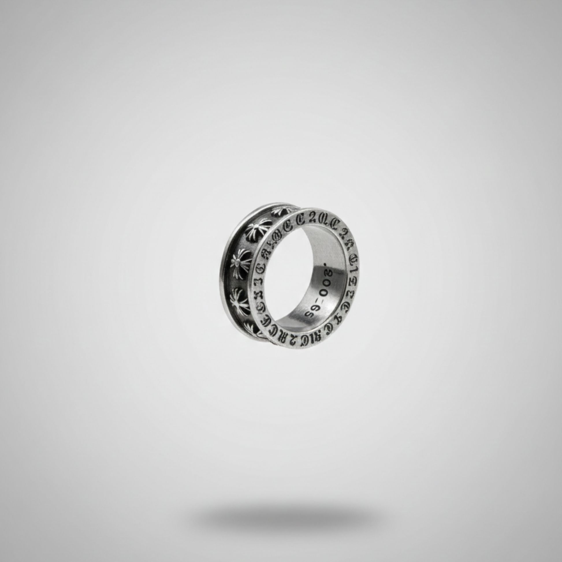 Inspired by the original Chrome Hearts ring, this piece is crafted from stainless steel and comes in a US size 10. It features a blurry engraving of “Chrome Hearts” inside the band and is non-adjustable, offering a stylish and durable option for everyday wear.